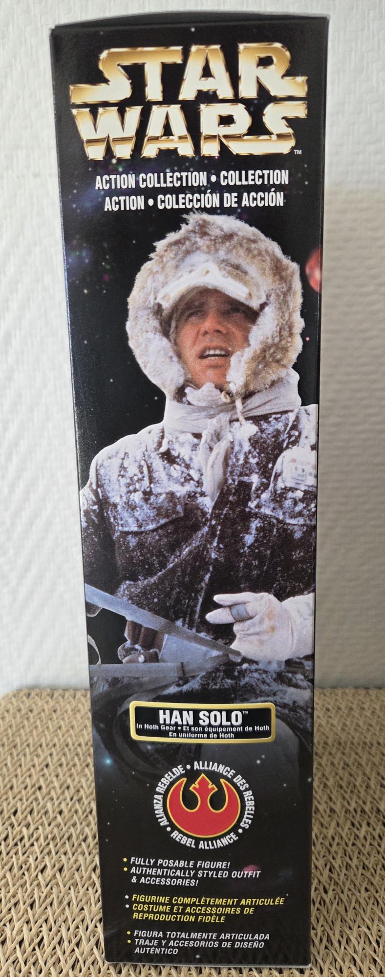 Licence : Star Wars - Gamme : Action Collection - Personnage : Han Solo – Hoth Gear - Taille : env. 30 cm - Figurine entièrement articulée - Accessoires inclus : Blaster rebelle fonctionnel, Bâton / équipement Hoth - État : NEUF – emballage d’origine